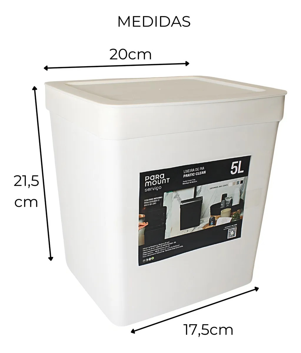 Com 5 litros, é perfeita para descarte rápido de resíduos leves.