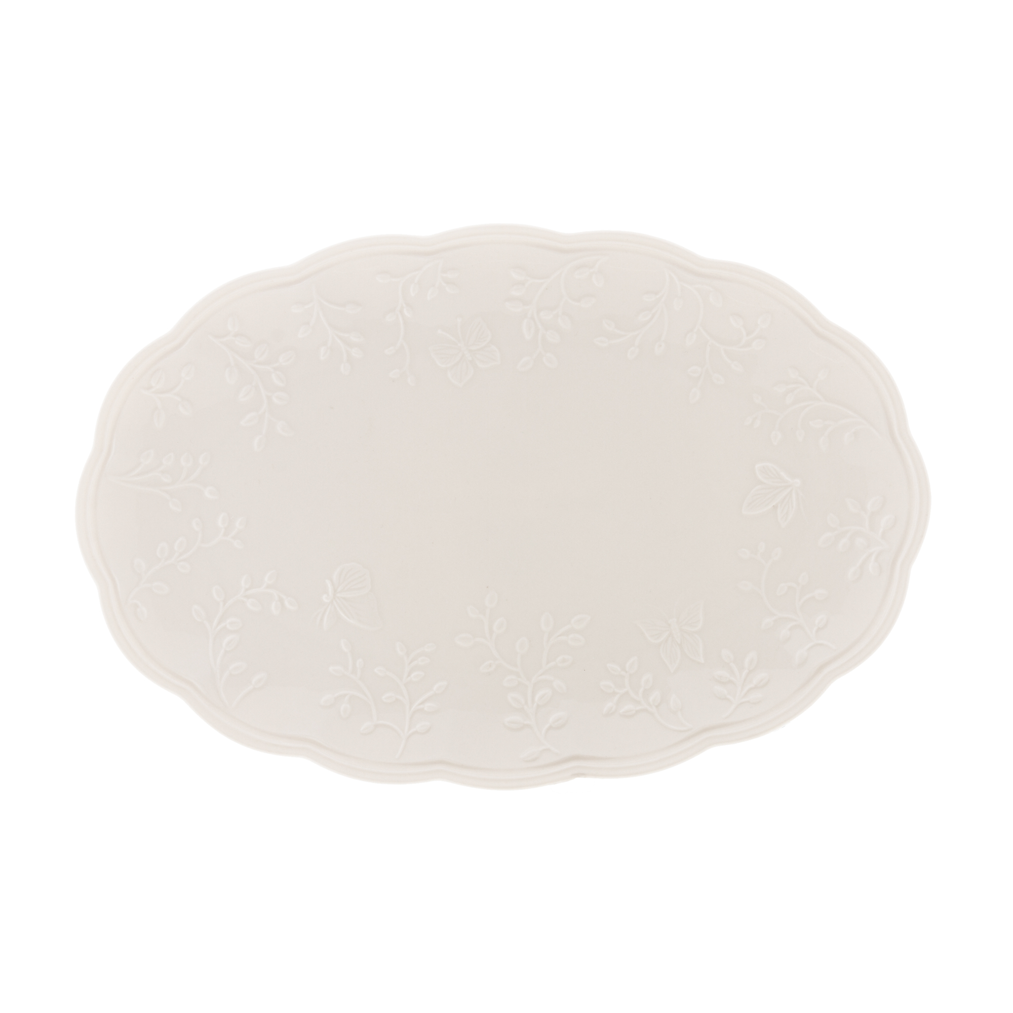 Confeccionada em porcelana New Bone, esta travessa destaca-se pela sua resistência, durabilidade e elegância, proporcionando uma experiência única. O design Butterfly Flower acrescenta um toque de delicadeza e sofisticação à sua mesa, inspirado na beleza da natureza.